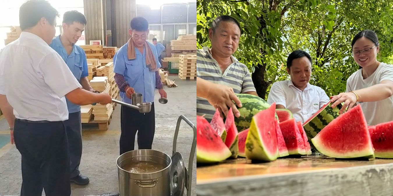 前程公司歷年來(lái),每逢高溫都會(huì)在每個(gè)車(chē)間配備藿香正氣水、鹽汽水、冰紅茶等飲料供員工隨時(shí)自取,公司食堂也推出清爽不油膩的“夏季專屬”菜品,并每天提供綠豆粥。另外,公司行管代表也齊上陣為一線員工提供“切西瓜送清涼”的人性化服務(wù),把清涼和關(guān)懷送到每一位一線員工的心坎上。